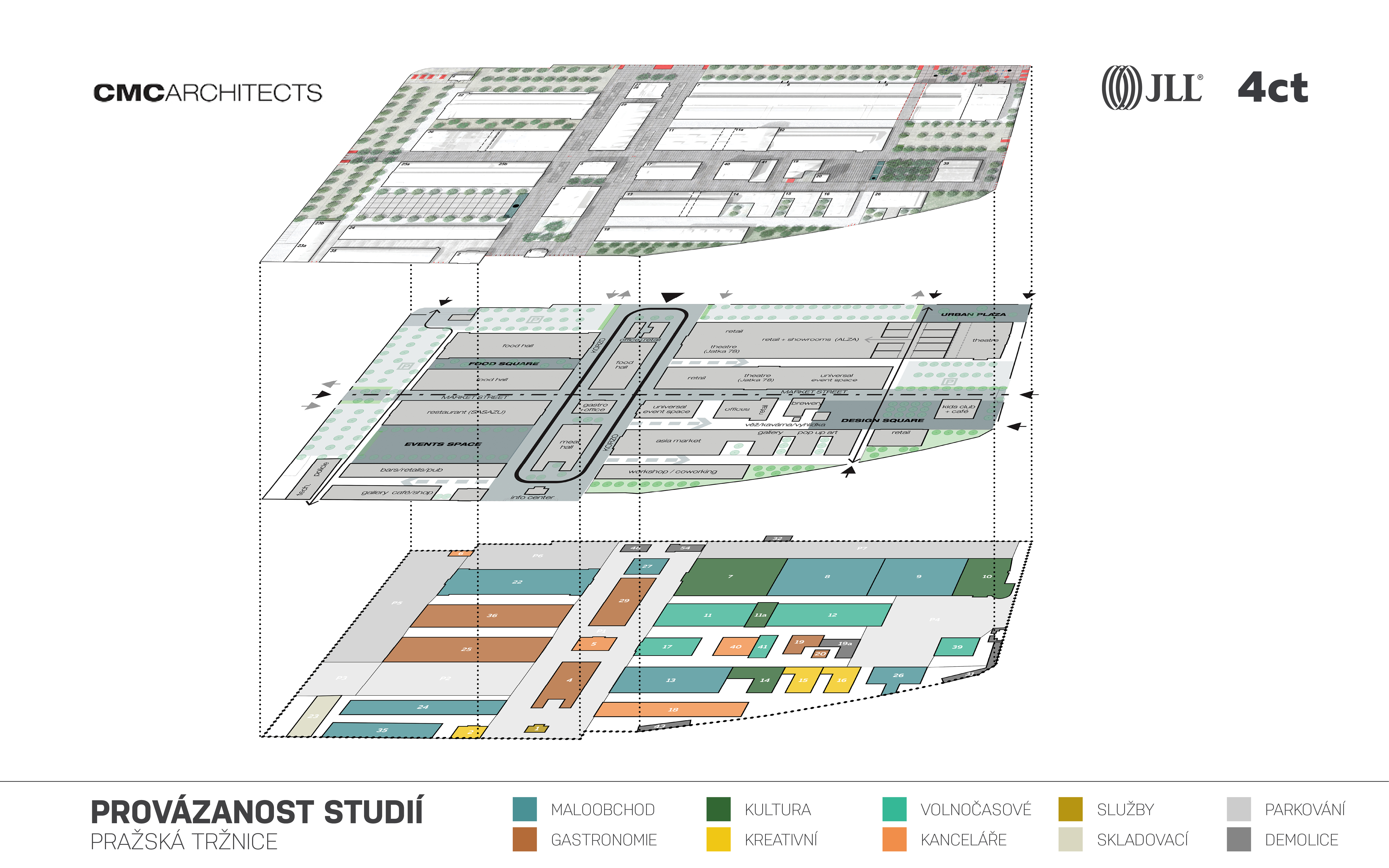 „Vytyčeného záměru revitalizace Pražské tržnice chceme dosáhnout pomocí urbanistické studie. Ta jasně organizuje provoz areálu, hierarchizuje veřejná prostranství, zachovává industriální charakter místa a zároveň poskytuje atraktivní prostory pro nové využití a nové nájemce tak, aby svou nabídkou oslovili a přilákali širokou škálu návštěvníků,“ uzavírá architekt Vít Máslo, spoluzakladatel studia CMC architects.